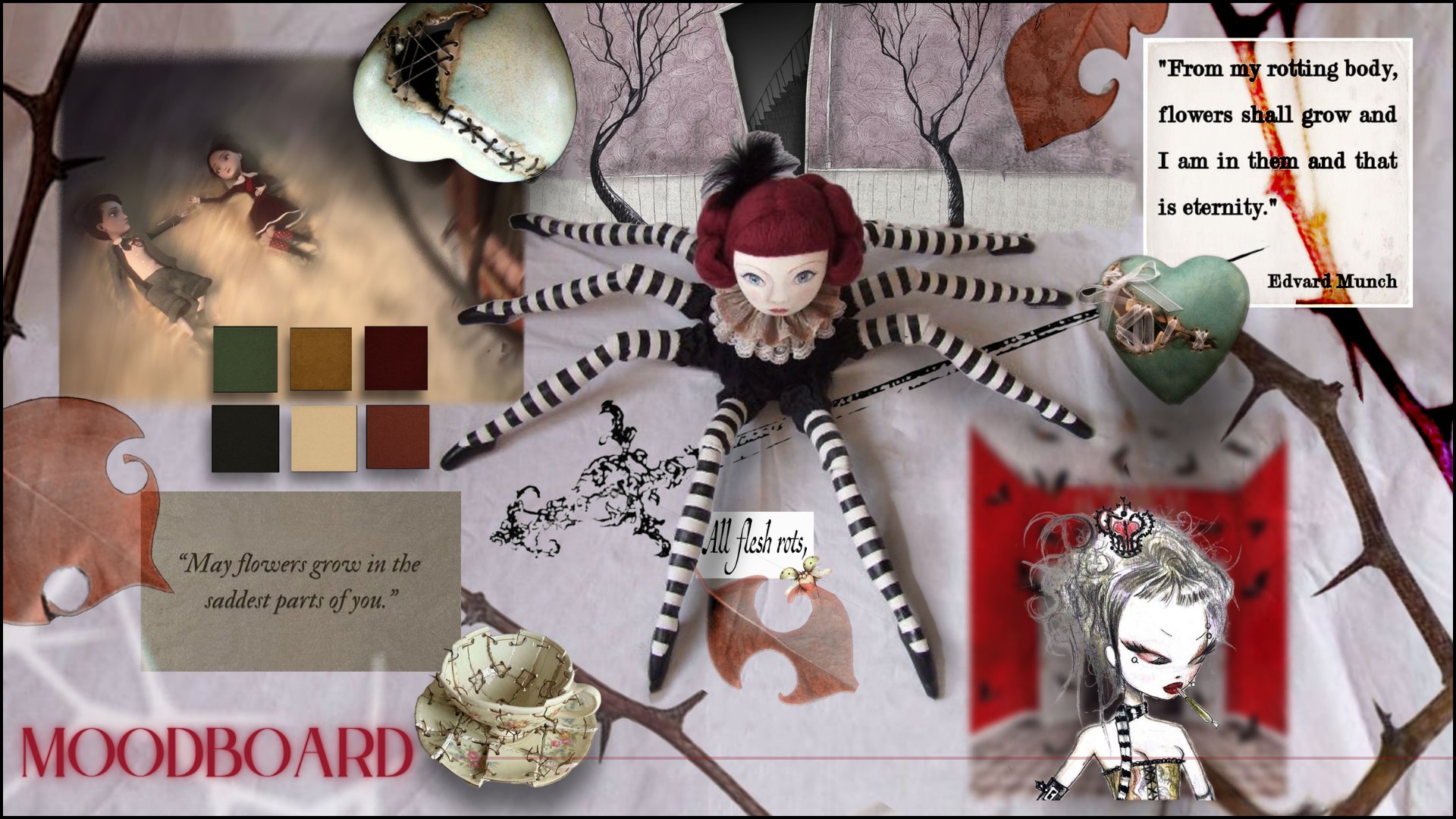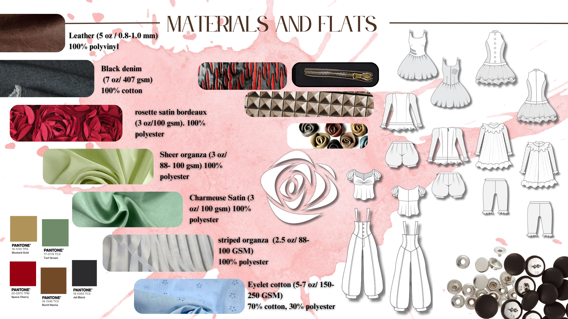 Is a collection that focuses on the contrasting elements, soft and hard, within its textures, silhouettes, hardware, etc. Looking at the styles of punk and antique dolls and combining the identifying features. These elements complement each other and bring out each other’s beauty, like a rose with its delicate petals and sharp thorns.